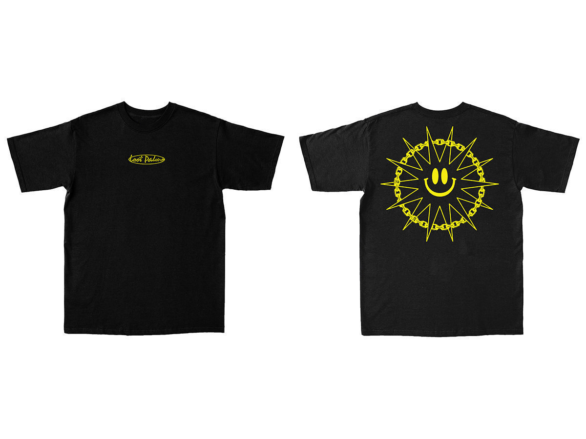 1 x crystal blue 12" vinyl with screen printed Lost Palms sleeve, inner white disco bag and colour printed centre stickers + Lost Palms 'Smiley' T-shirt.
